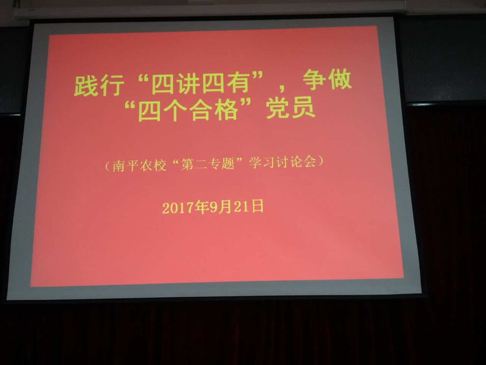 根据《中共南平市委教育工委关于推进教育系统“两学一做”学习教育常态化制度化的指导意见》的有关要求与部署,9月21日下午我校党总支组织全体党员开展践行“四讲四有”标准,争做“四个合格”党员主题学习讨论会。会议由校党总支副书记、校长李立泉主持,在职在校的65名党员参加了讨论会。