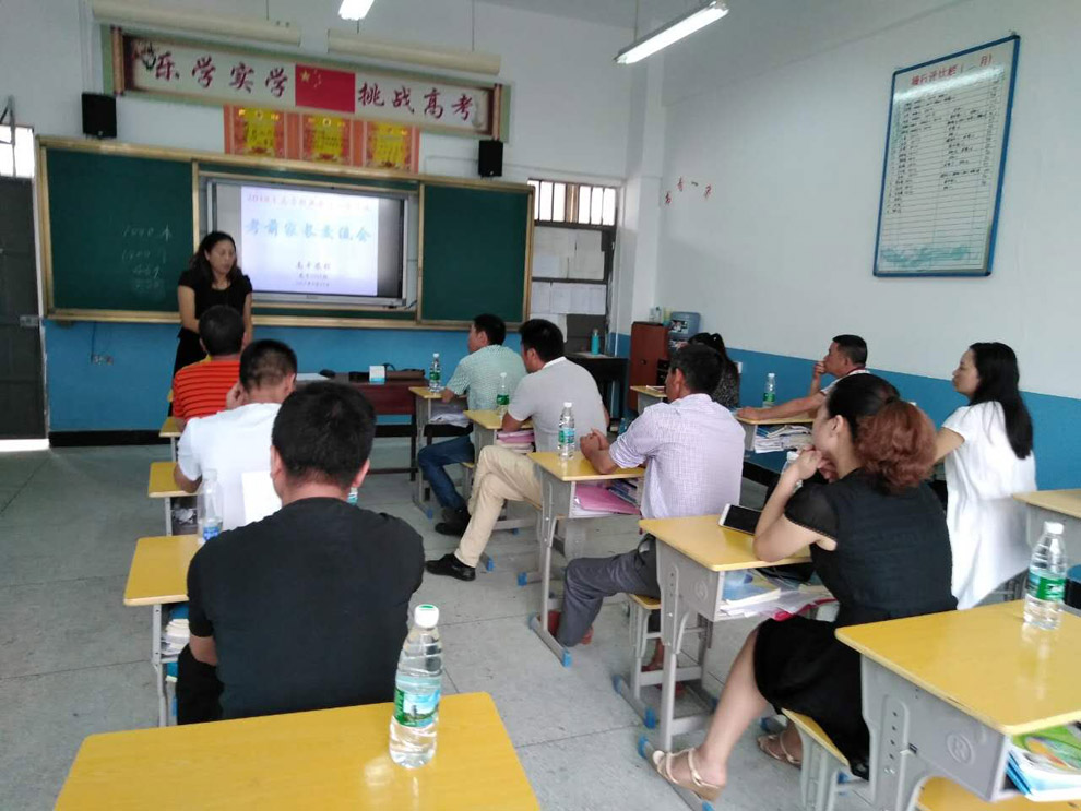 2017年9月23日上午我校举行高考1501班家长座谈会。教务科罗彩媚科长在会上介绍了我校设立高考班的目的和意义,并强调指出给孩子提供多个机会,是国家倡导人人成才、皆可成才、人人皆会成才的人才培养观,我校经多年尝试取得显著成绩,她希望家长们多与孩子交流,多鼓励孩子,多支持孩子,以便孩子们在高考前的复习中能够更加投入,更有信心,从而为孩子们在来年的高考中考出好成绩奠定坚实基础。