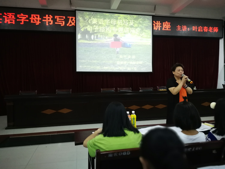 为了激发学生的学习兴趣,提高学生英语学习成绩。我校特邀请叶启春副教授给学前专业和会计专业的学生,在敬业楼二楼会议室举行“英语字母书写及句子结构”讲座。讲座由南平农校教务科罗彩媚科长主持。
