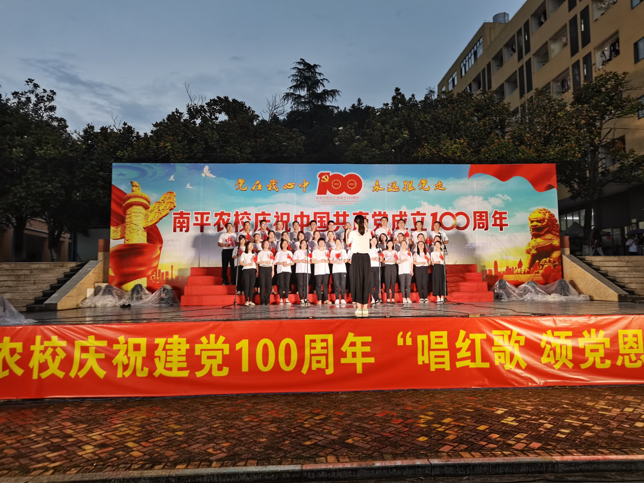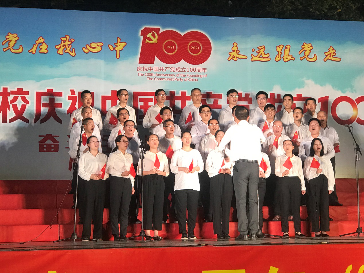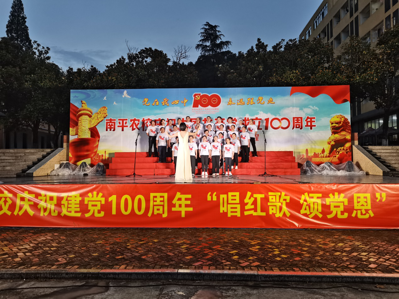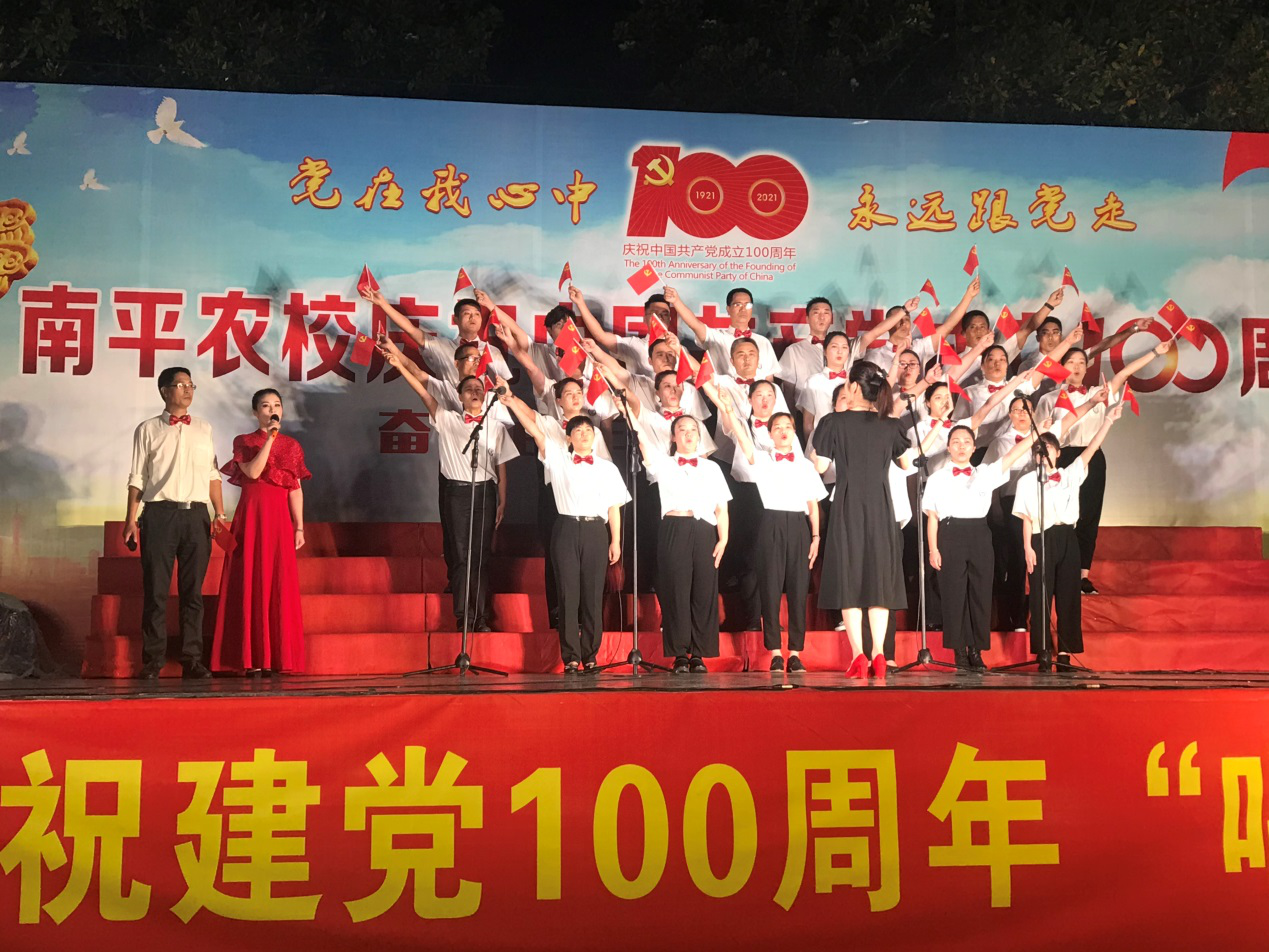 红歌唱响辉煌,党史传承精神。6月10日晚,伴着蒙蒙细雨,南平农校庆祝建党100周年“唱红歌 颂党恩”教职工合唱比赛在生活区朱子广场隆重举行。全校教职工按支部及任教学科分成六组进行激烈角逐,2020级大专班学生现场观看了演出。