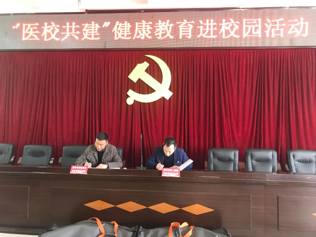 南平市第二医院行政后勤党支部书记葛建军和南平农校学生管理党支部书记王霄汉签订“医校共建”健康教育活动协议。葛建军书记介绍了南平市第二医院的医疗、预防及急救等内容,南平农校学生管理党支部书记王霄汉希望通过本次 “医校合作”双方今后拓宽合作渠道,共建共享,为师生健康发展保驾护航。