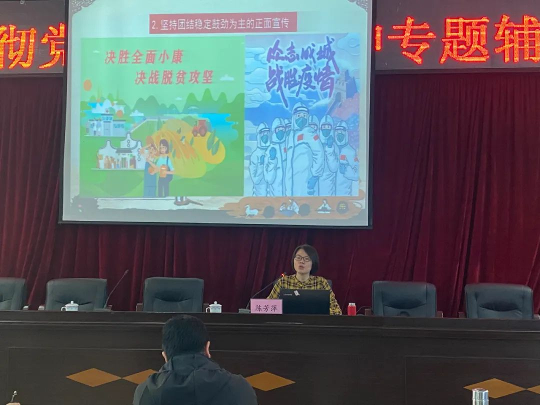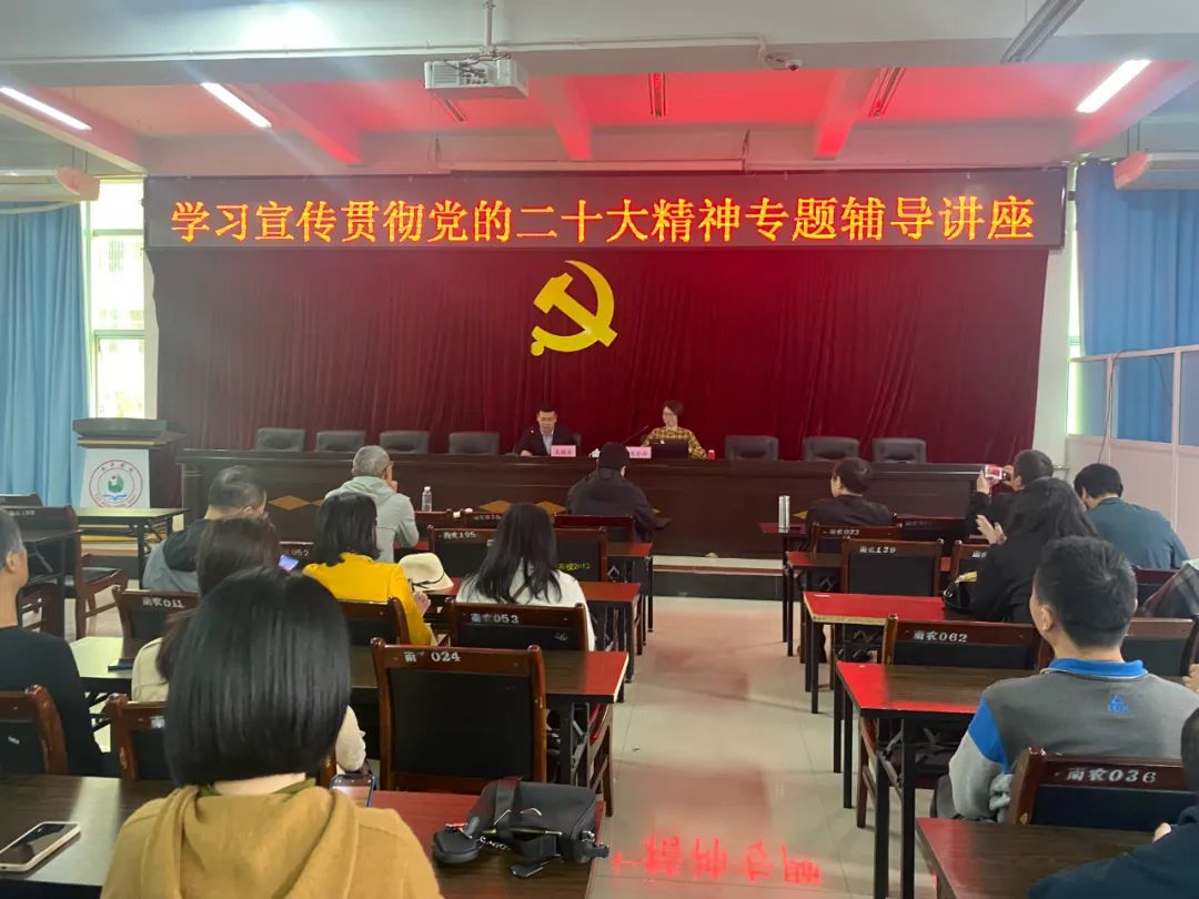 为进一步学习宣传贯彻党的二十大精神,增进文化自信自强,落实立德树人根本任务,2023年4月26日下午,中共南平市委党校陈芳萍老师莅临学校作《推进文化自信自强,铸就社会主义文化新辉煌》学习宣传贯彻党的二十大精神专题辅导讲座。校党委书记吴棋全主持会议,刘卫东校长和全体教职工一起聆听讲座。