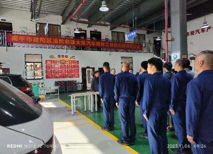 11月6日,首先于南平农校实训中心举行汽车维修工职业技能等级鉴定培训班开班仪式,南平市建阳区消防救援大队与学校联建联学领导小组出席开班仪式,学校党委副书记、校长刘卫东主持仪式,并致辞。