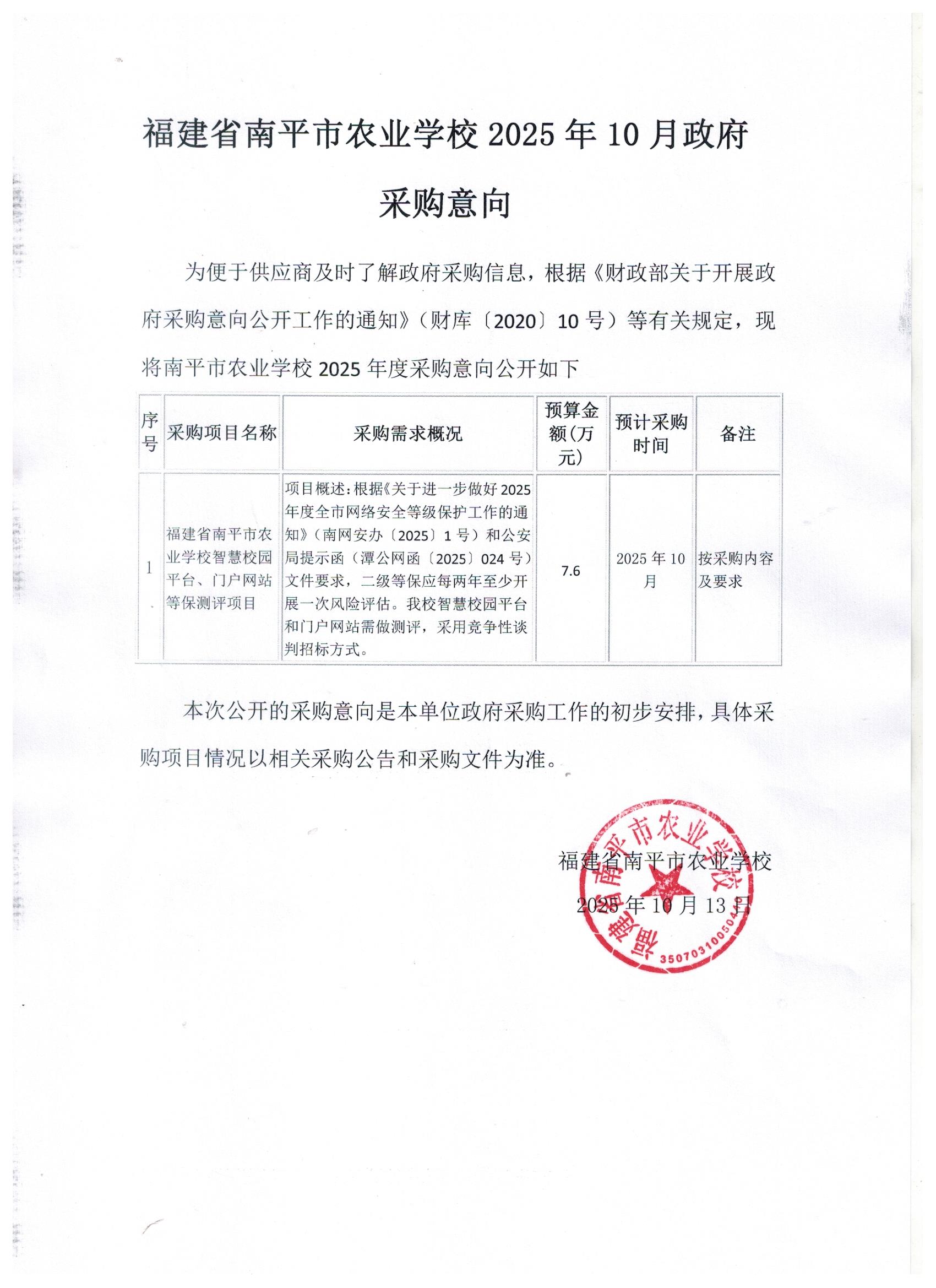 南平市农业学校智慧校园平台、门户网站等保测评意向公告