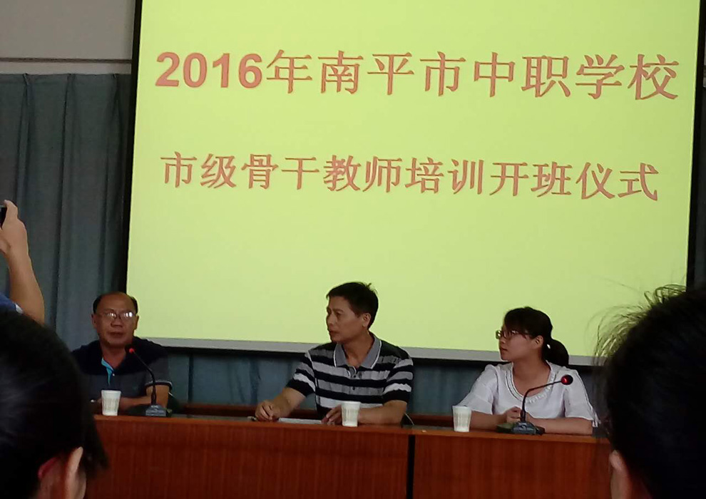 8月16日-8月21日,2016年度南平市中职学校市级骨干教师培训在邵武市举行,我校13位青年骨干教师参加了此次培训。16日上午八点,开班仪式在邵武市教师进修学校举行,到会的有南平市教育局、邵武市教育局、南平市职成教研室有关领导老师及来自全市各中职学校的教师。会议由职成教研室陈剑主持,邵武市教育局赵许帅副局长致欢迎辞,并介绍了邵武市职业教育发展情况。南平市教育局林元树副局长指出了职业教育培训的重要性,他要求各位青年骨干教师认真学习,学以致用,并对全体骨干教师提出希望:一是深刻认识骨干教师市级培训的意义;二是深刻认识和珍惜市级培训建立的学习平台;三是希望大家把培训成果应于教学改革实际,并努力提高我市的职业教育水平。
