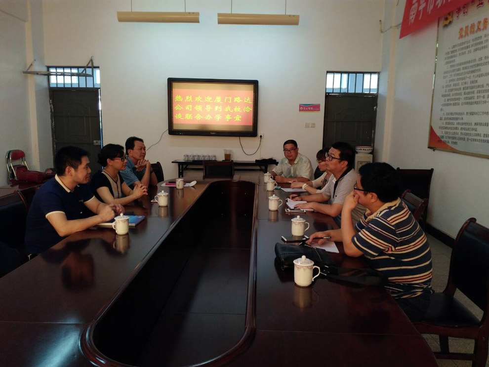 2016年6月23日下午,厦门路达公司领导到我校洽谈校企合作深入开展的相关事宜。出席本次会议的人员有:郑萍旺副校长,刘卫东副校长,教务科罗彩媚科长和雷惠强副科长;厦门路达公司人力资源部周玲总监,邱加恩主席以及招聘部刘江经理。