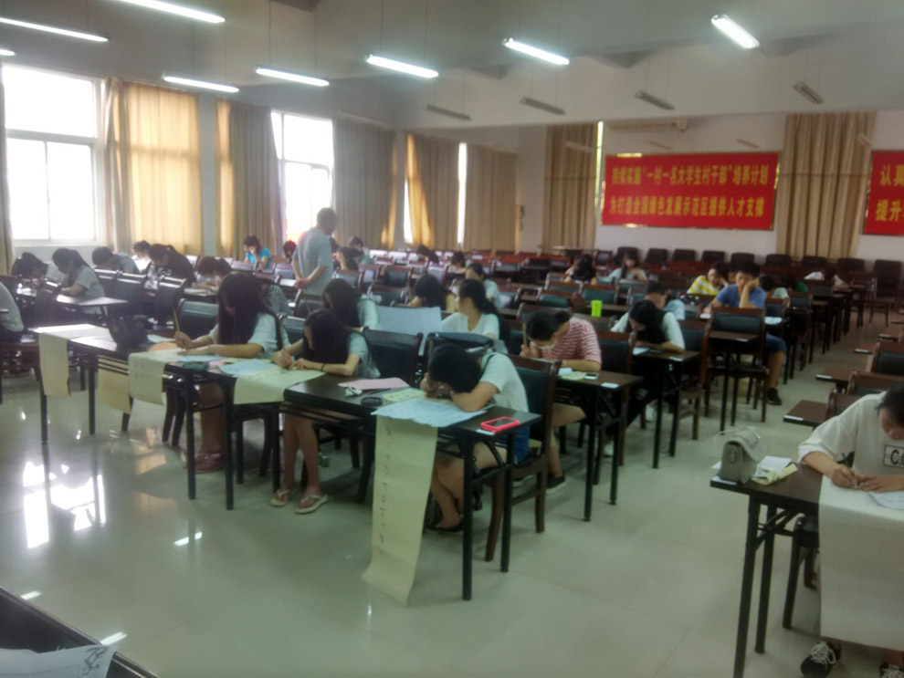 为提高学生规范汉字水平,弘扬和传承中华民族的优秀传统文化,丰富校园文化生活,激发学生的书法兴趣与爱好,提高我校学生的艺术修养,我校于2016年6月15日上午,组织学生参加南平市第八届规范汉字书写大赛。