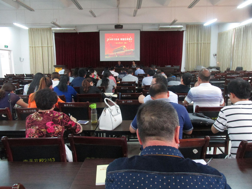 按照《南平农校“两学一做”学习教育活动实施方案》的具体安排,5月25日下午,南平农校在敬业楼二楼大会议室开开展学习《中国共产党章程》专题辅导学习会。会议由学校党总支书记田建鸣主持,建阳区党校高级讲师王晓兰老师作学习《党章》专题辅导报告,学校全体党员参加了会议。