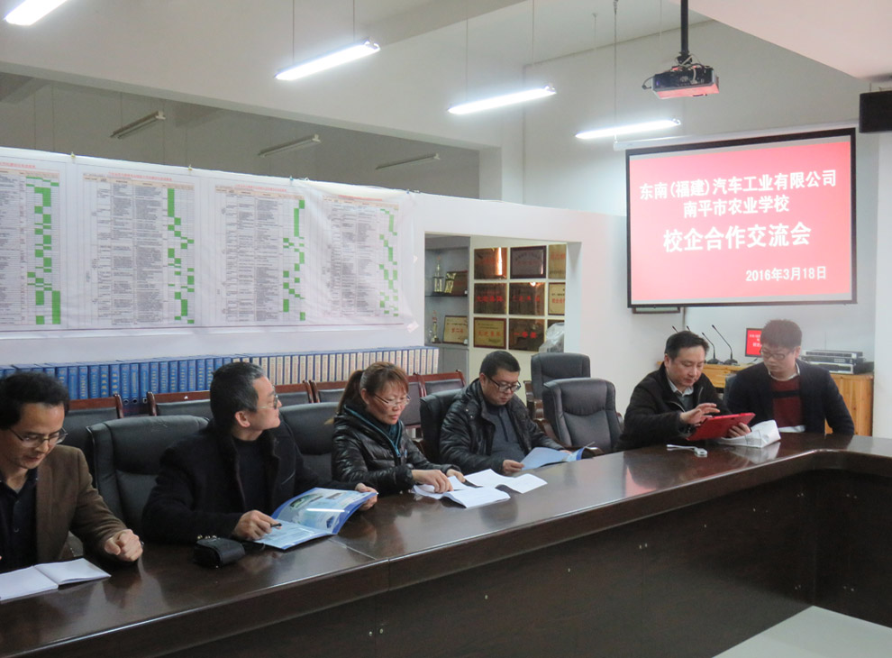 3月18号东南(福建)汽车工业有限公司陈逸昌部长一行6人到我校进行校企合作交流会,期间对东南专班深化合作、校企合作办学、东南汽车售后维修站建设等项目进行详细探讨,我校郑萍旺副校长、贺建明副校长、罗彩媚科长、陈峰梅、林茂兴等老师全程陪同。
