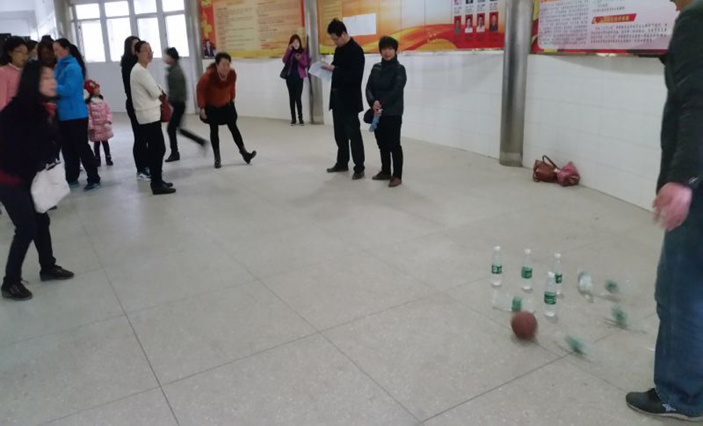 3月9日下午,虽然天公不作美,活动场所改变,但在学校工会干部的组织下,各项的活动还是热闹有序地进行。这次活动内容有保龄球活动、掂乒乓球迎面接力赛、夹玻璃球活动、穿针引线活动等。全体女教职工分成六组,由陈峰梅、丁秀华、黄丽娟、王素华、叶卫青、黄香花为组长,组员由组长抽签确定,并由组长负责分工,尽可能的让每组的队员都要参加一个项目的比赛。此次比赛设一等奖一组,二等奖两组,三等三组。