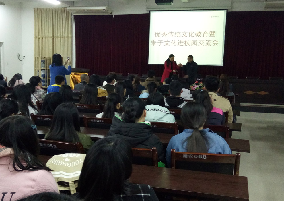 为进一步弘扬中国优秀传统文化,加强我校社主义核心价值观教育,开展优秀传统文化暨朱子文化进校园活动, 3月2日,我校特邀南平朱子研究会专家成员,南平文史专家、紫阳文化协会副主席祝熹老师到我校开设讲座,本次演讲的主题是“论语概述”。我校部分领导、老师及学前教育、航空服务等相关专业的学生到会场,临听了一场精彩的演讲。